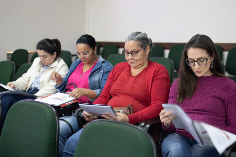 Gestão que dá sabor ao crescimento: 8ª oficina encerra ciclo do Cozinha Multicultural em Toledo No último encontro, os empreendedores aprenderam estratégias para organizar o estoque, evitar desperdícios e manter uma gestão eficiente que fortalece o negócio. Oficineira, Fernanda Malacoski, Tânia Martins, intérprete de Libras e empreendedores. Imagem por: Maicom