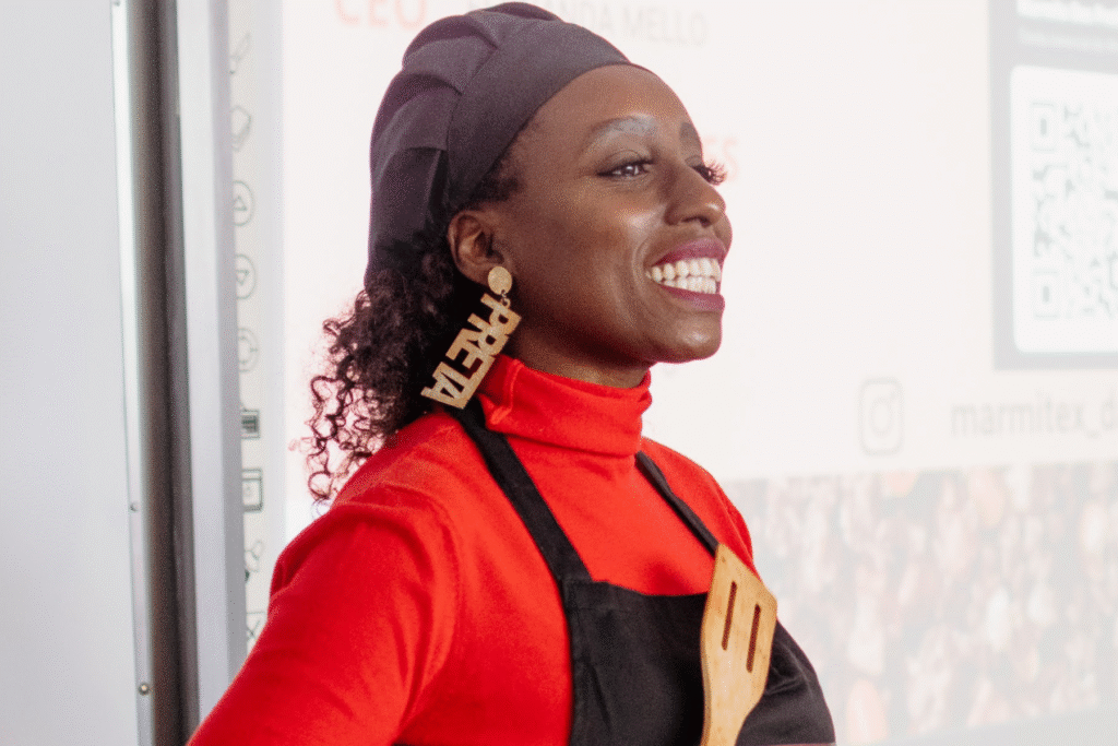 Empreendedora na apresentação do pitch. Imagem por: Nathu Sousa .