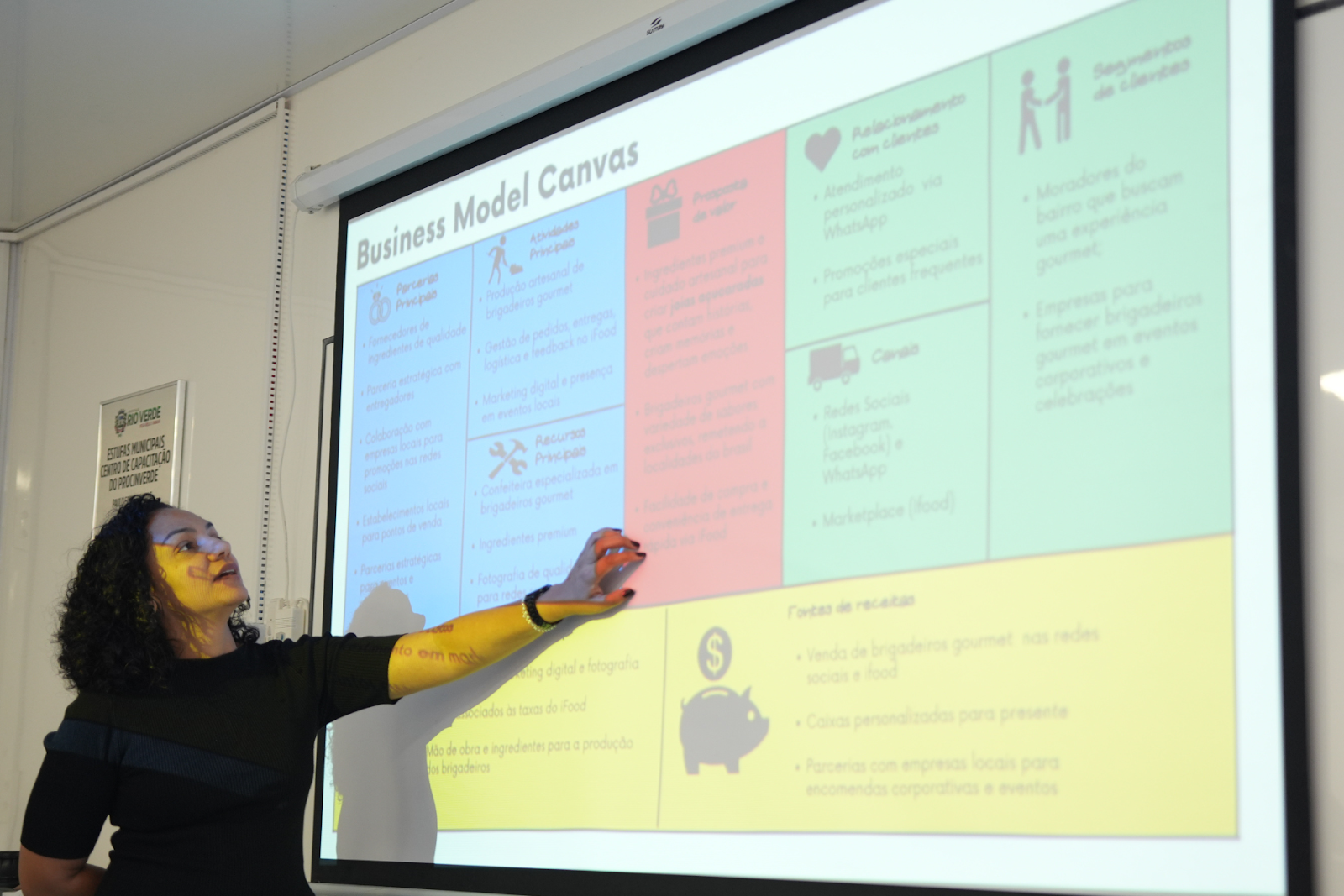 Nesta oficina, os empreendedores aprenderam a organizar seus produtos e serviços e, a criar estratégias para posicionar seu empreendimento de forma competitiva no mercado. Foram abordados conceitos de finanças, precificação, canais de vendas e planejamento estratégico, para que cada empreendedor tenha clareza sobre os passos necessários para tirar suas ideias do papel com segurança e confiança.