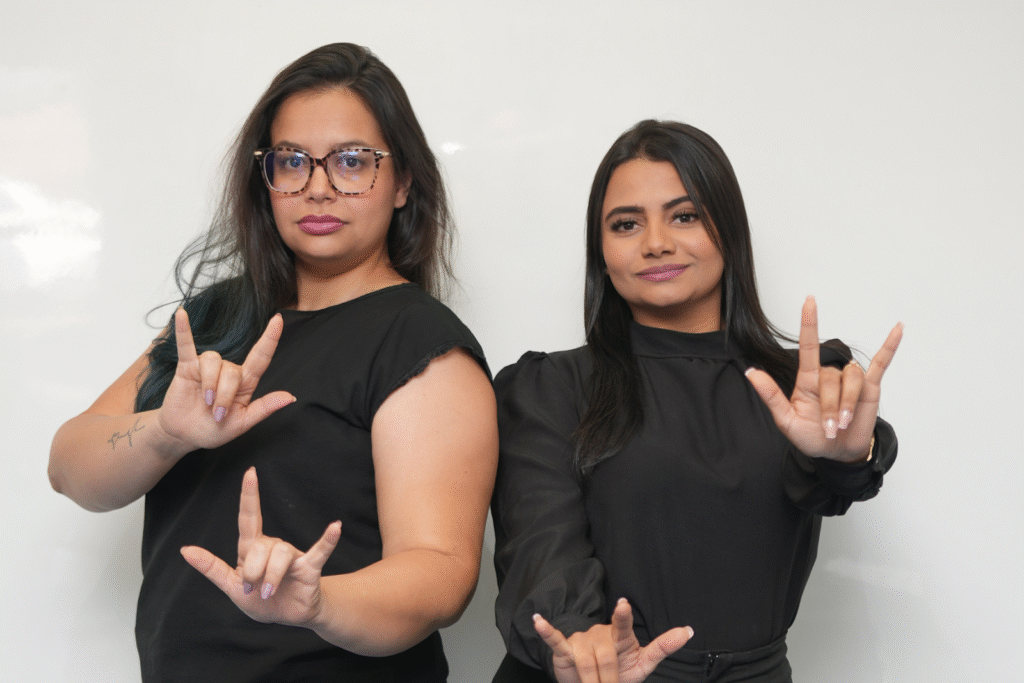 Intérpretes de Libras na 5ª oficina do Cozinha Multicultural. Imagem por: Matheus Nunes.