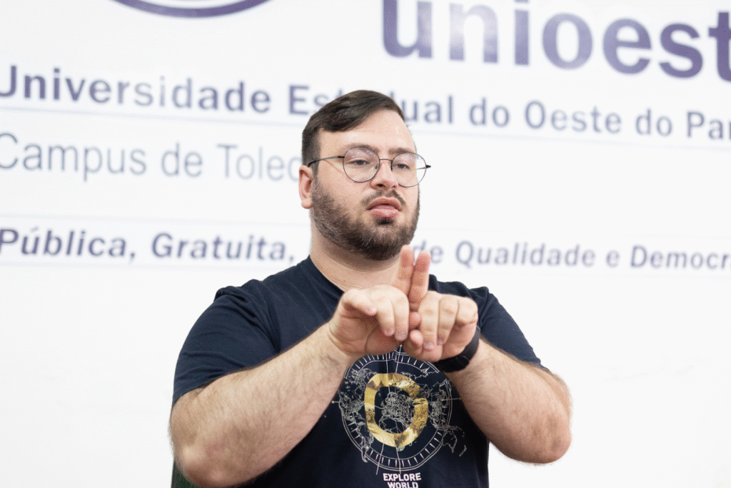 Thiago Mazzarollo, intérprete de Libras. Imagem por Maicom Sturm.