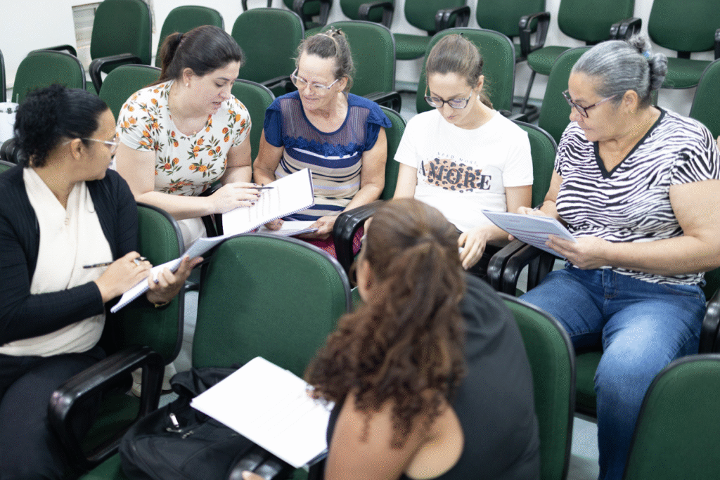 A presença desse time, tanto presencialmente quanto de forma online, cria uma rede de apoio que acompanha cada participante desde o início da formação até o encerramento.