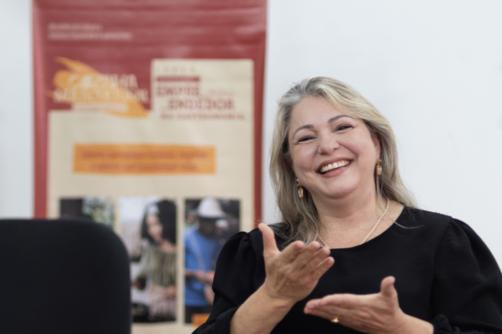Tânia Martins, intérprete de Libras. Imagem por: Maicom Sturm.
